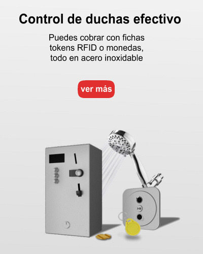 Ahorro eléctrico con productos robustos activados por fichas, monedas, tarjetas bancarias y más. Aplicados a iluminación, lavanderías, riegos, duchas, aire acondicionado y más.